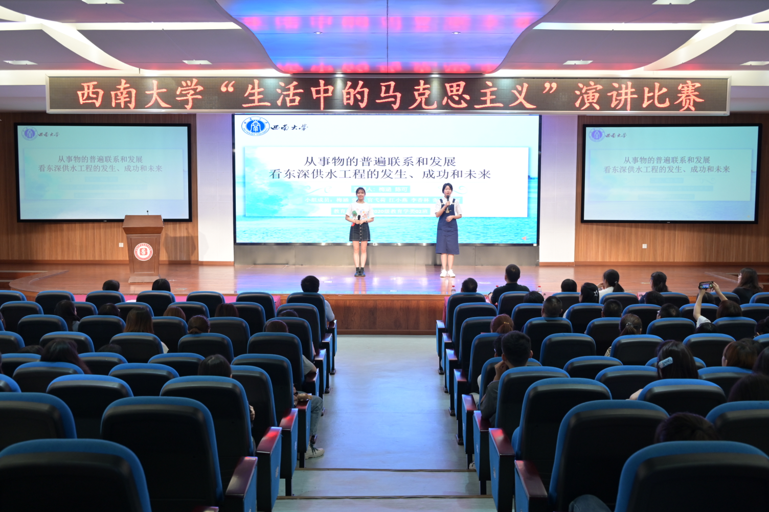 近日,由伟德victor1946校党委宣传部主办,bv伟德国际1946承办的“生活中的马克思主义”演讲比赛顺利举行。学校党委宣传部副部长周翱、教务处副处长严怡、校团委副书记张瑜、出版社高等教育分社社长郑持君以及bv伟德国际1946党政领导出席,学院思政课教师代表以及各参赛团队学生代表观摩了比赛。