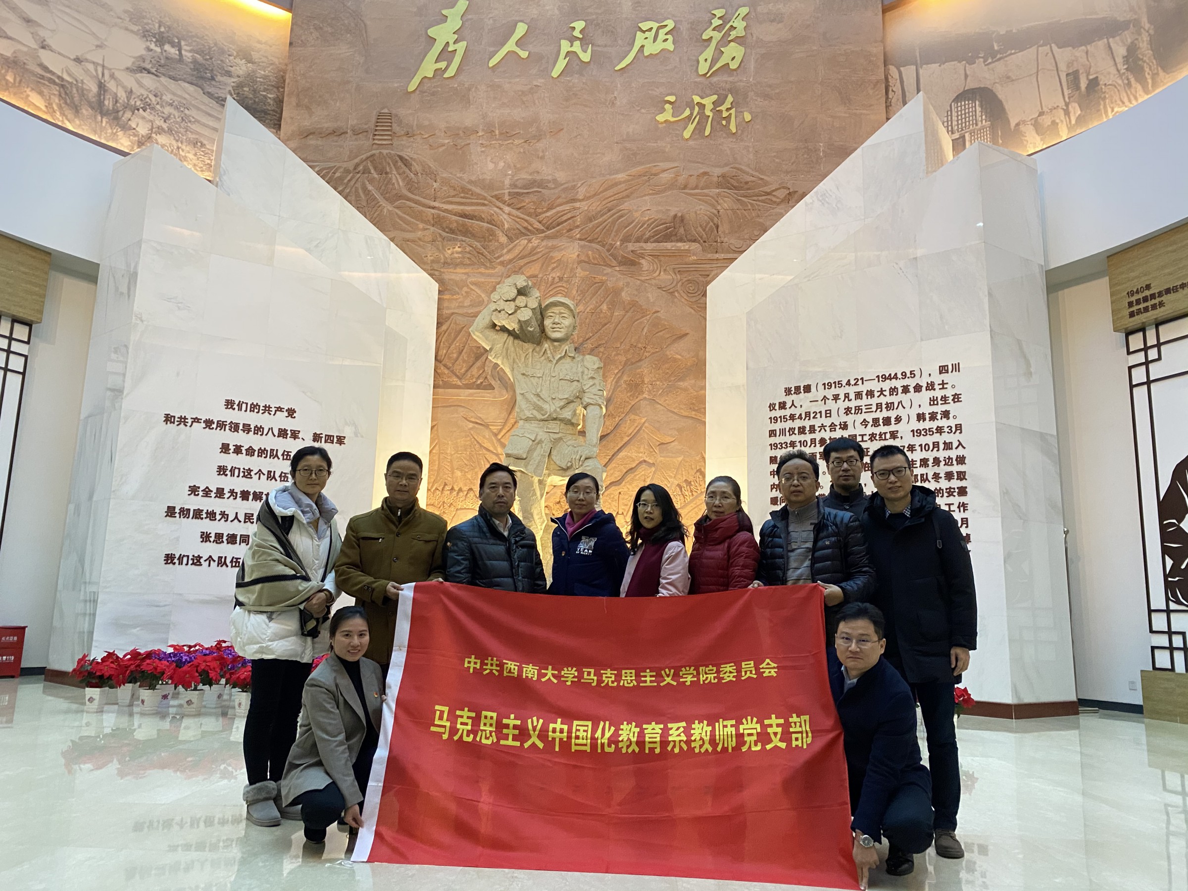 为贯彻落实中央《关于巩固深化“不忘初心、牢记使命”主题教育成果的意见精神》,2020年12月11日-13日,bv伟德国际1946马克思主义中国化教育系教工党支部(下简称马中化系党支部)14人赴南充开展了“学习党的创新理论,行初心之旅”品牌系列活动之“弘扬英雄精神,坚定理想信念”主题党日活动。活动从与高校党支部开展联合主题党日、参观英雄故里、支部成员交流总结三个环节开展。