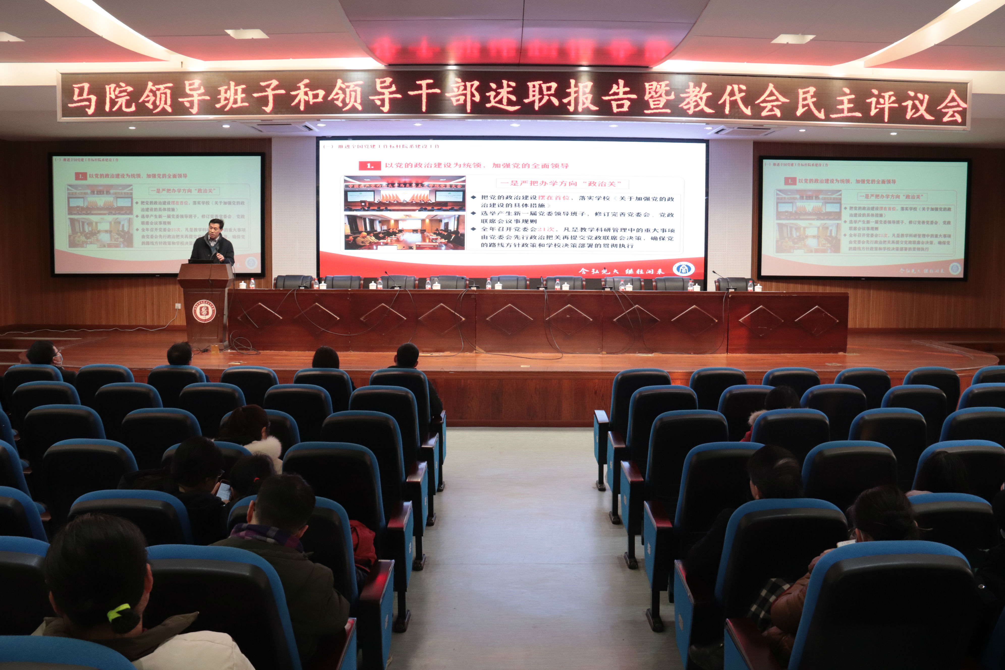 根据学校下发的《关于开展2020年中层领导班子和领导干部年度考核暨教代会民主评议工作的通知》的要求,2021年1月15日上午,bv伟德国际1946领导班子和领导干部2020年度述职报告暨教代会民主评议会于在学院505报告厅进行。学校党委安排党委研究生工作部部长、研究生院院长石孝均、工会综合科科长任四海出席本次会议。会议由学院党委常务副书记廖晓衡主持,学院教职工参加大会。