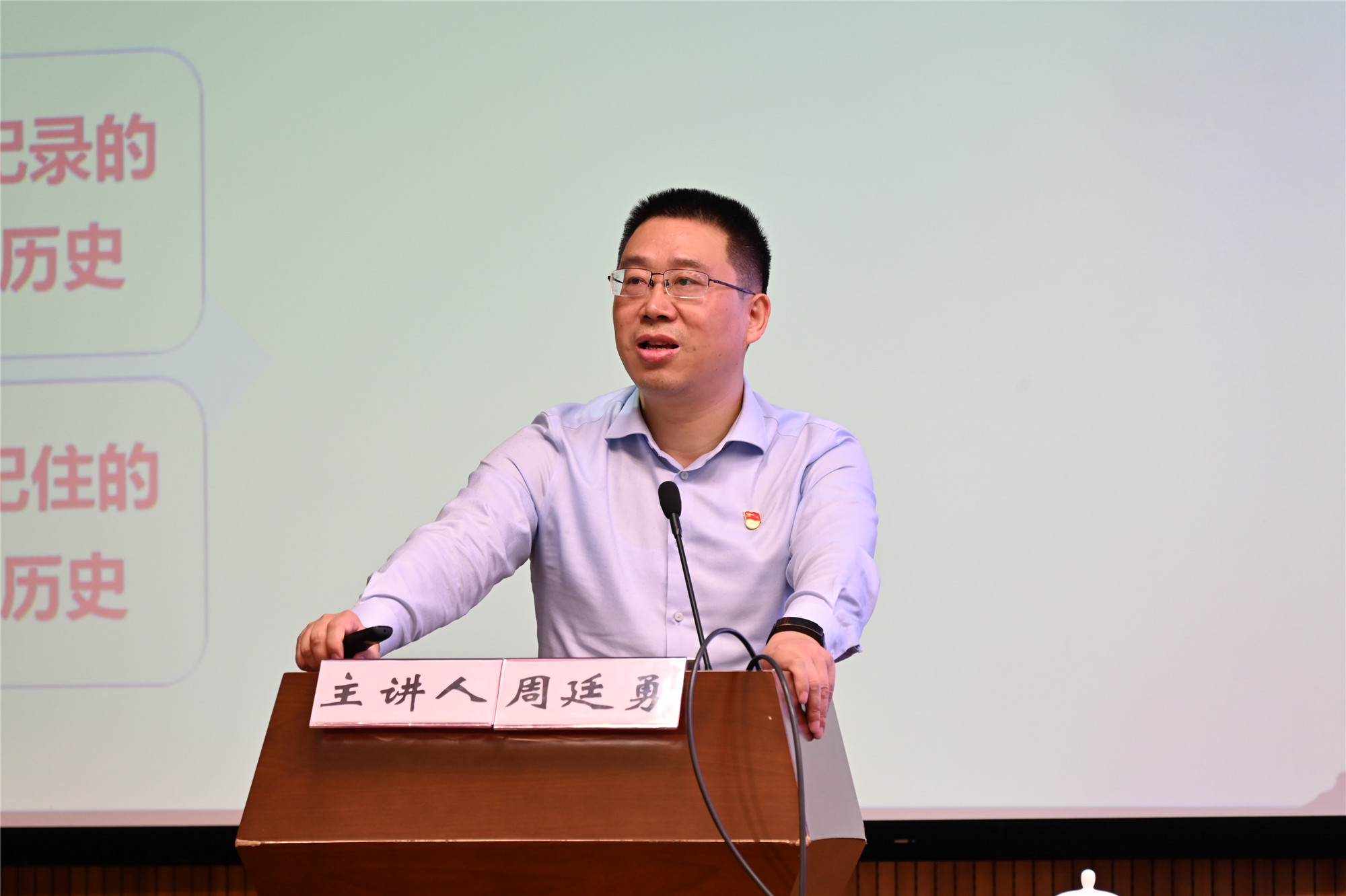 动员部署会后,学院党委邀请中共重庆市委党史研究室副主任周廷勇为全体党员作了党史学习教育专家报告第一讲:“学好‘教科书’,跳出‘周期率’——习近平《论中国共产党历史》解读”。讲座紧紧围绕习近平《论中国共产党历史》这个主题,聚焦学好“教科书”,跳出“周期率”这个主题,从不懈奋斗史、理论探索史、自身建设史三个方面进行了详细解读。讲座坚持大历史观,坚持正确的党史观,对广大党员师生深入理解习近平如何看待和用好中共党史,进而深入理解习近平新时代中国特色社会主义思想提供了重要参考,也为高标准高质量推进党史学习教育提供了有益借鉴。