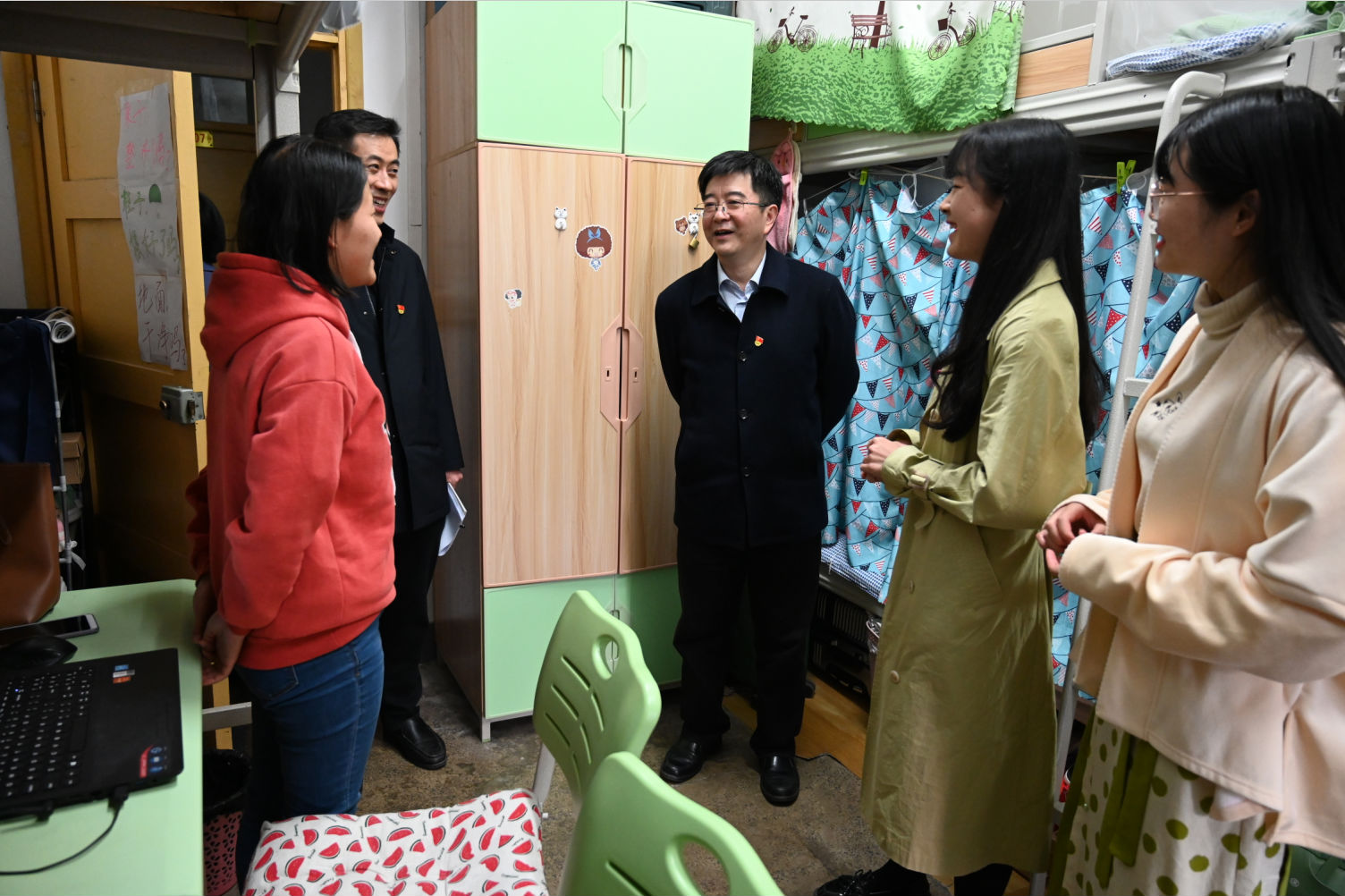 李书记深入学生寝室,与同学们面对面亲切交流,极大地鼓舞了同学们,同学们纷纷表示,一定不辜负学校的培养和老师们的关怀,立志做有理想、有本领、有担当的新时代青年。