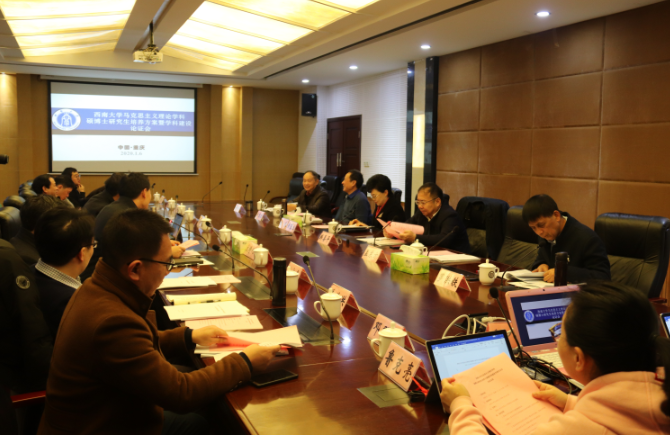 2020年1月6日上午,伟德victor1946马克思主义理论学科研究生培养方案暨学科建设专家论证会在学院310会议室进行。参加本次论证会的专家有国务院学位委员会马克思主义理论学科评议组成员、召集人,我院马克思主义理论学科负责人黄蓉生教授,国务院学位委员会马克思主义理论学科评议组成员、国家级人才、中宣部“四个一批”人才、吉林大学党委常委、宣传部长韩喜平教授,国务院学位委员会马克思主义理论学科评议组成员、西安交通大学bv伟德国际1946卢黎歌教授,重庆师范大学原党委书记邓卓明教授,重庆师范大学校长、国家级人才孟东方教授,bv伟德国际1946罗洪铁教授。学院马克思主义理论各二级学科负责人和全体硕、博士导师参加此次会议。论证会分为两个阶段进行。