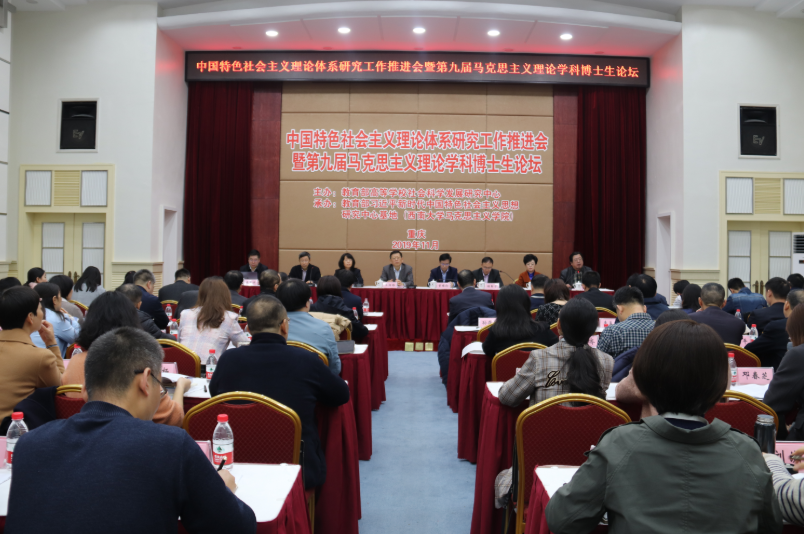 为深入学习贯彻习近平新时代中国特色社会主义思想和党的十九届四中全会精神,积极推动中国特色社会主义理论体系研究和马克思主义理论学科发展,11月16日,由教育部社科中心与伟德victor1946联合举办的“中国特色社会主义理论体系研究工作推进会暨第九届马克思主义理论学科博士生论坛”在重庆召开。来自全国近70所高校和科研机构的有关领导专家、中国特色社会主义理论体系研究专项项目在研课题负责人及博士生代表共120余人参加会议。