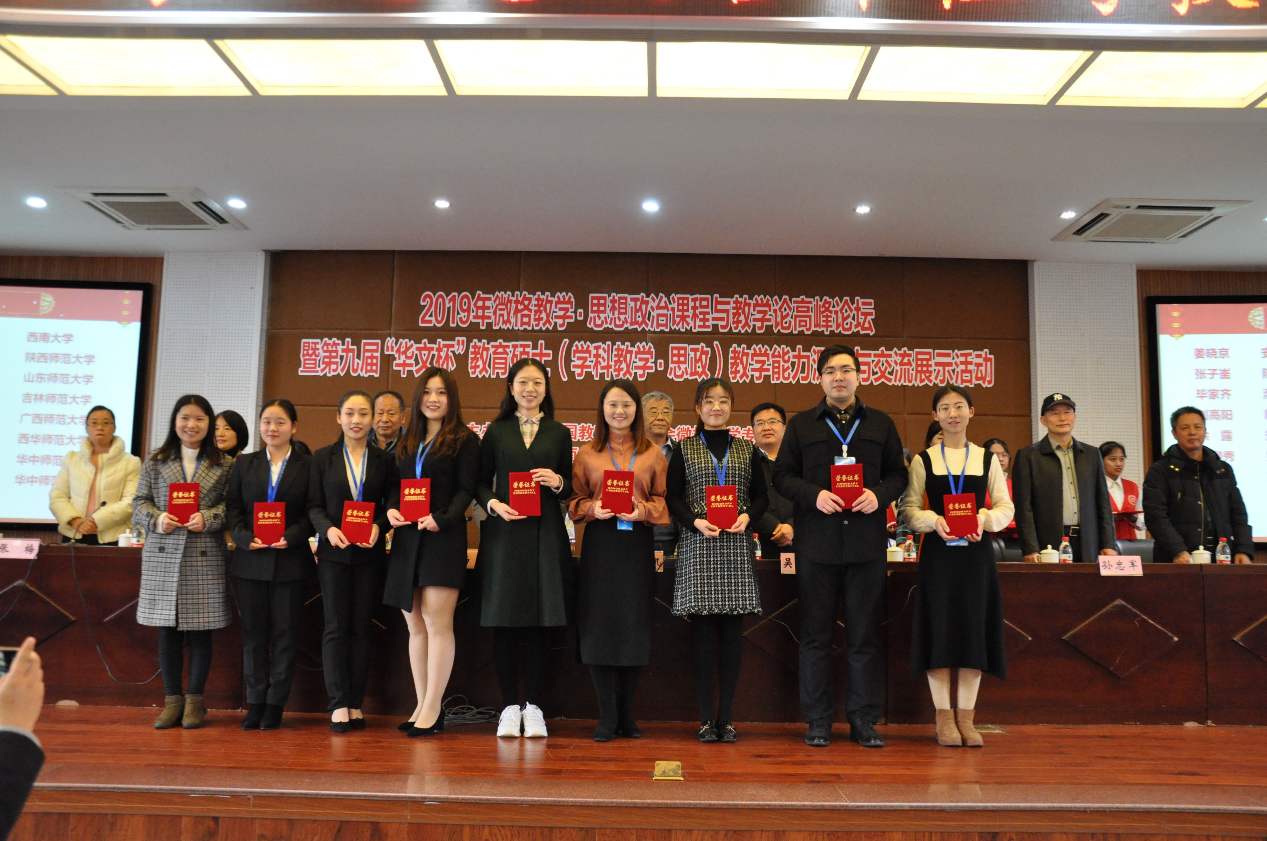 随后,“2019年微格教学·思想政治课程与教学论高峰论坛暨第九届‘华文杯’教育硕士(学科教学·思政)教学能力测试与交流展示活动”在bv伟德国际1946505报告厅落下帷幕。此次论坛举办过程中,来自全国四十余所高校的二百余名师生行万里路、取四方真经,百舸争流、博采众长,充分展现了教育硕士(学科教学·思政)扎实过硬的专业素养、热情昂扬的精神风貌以及指导教师团队的合作和奉献精神,是教育硕士(学科教学·思政)人才培养工作结出的又一硕果。