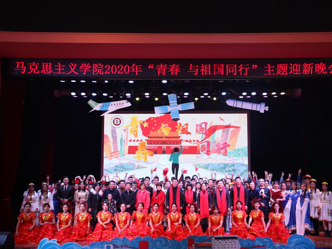 2019年12月21日晚19:00,bv伟德国际1946“青春 与祖国同行”2020年主题迎新晚会在光大礼堂隆重举行。学校党委副书记、学院党委书记潘洵,学院院长白显良、副书记李强等领导老师莅临晚会现场,各兄弟学院学生代表,马院全体学生积极参与。
