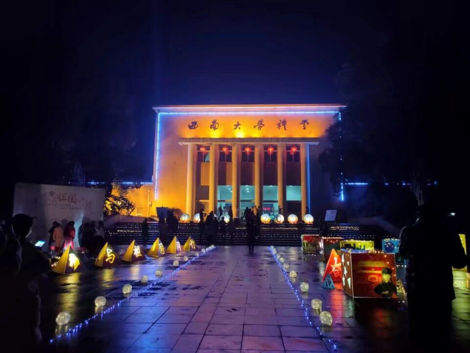 当晚,光大礼堂缤纷多彩、喜庆热闹。场外是精美的手工展板和灯箱,环绕彩色小灯泡,如梦如幻的场景吸引不少行人驻足观看。场内是隆重喜庆、气氛热烈。在舞蹈《华韵未央》的表演中,迎新晚会正式拉开晚会序幕。