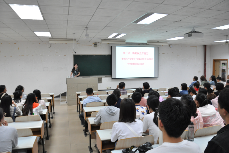 此次活动由马克思主义副院长吴艳东教授主持,邀请张国镛、邹绍清、文红梅三位老师担任评委。学院全体教师和本科17级、18级部分同学参加并观摩与学习。学校原党委书记,bv伟德国际1946黄蓉生教授也莅临会场指导观摩此次活动。此次活动分为两个环节,一是示范课教学环节;二是教学竞赛环节。首先,文红梅老师应邀为全体老师讲授示范课,文老师声情并茂用大量的历史史实,通过多媒体、启发式、提问式教学以及生动的语言和端庄的教态呈现了“唤起民众千百万——中国共产党领导下的新民主主义革命之中华民族抗日战争”的教学重点:昭昭前事,惕惕后人。史论结合的授课方式,使得历史知识讲授与价值引领有机结合,让在座的老师们受益匪浅。