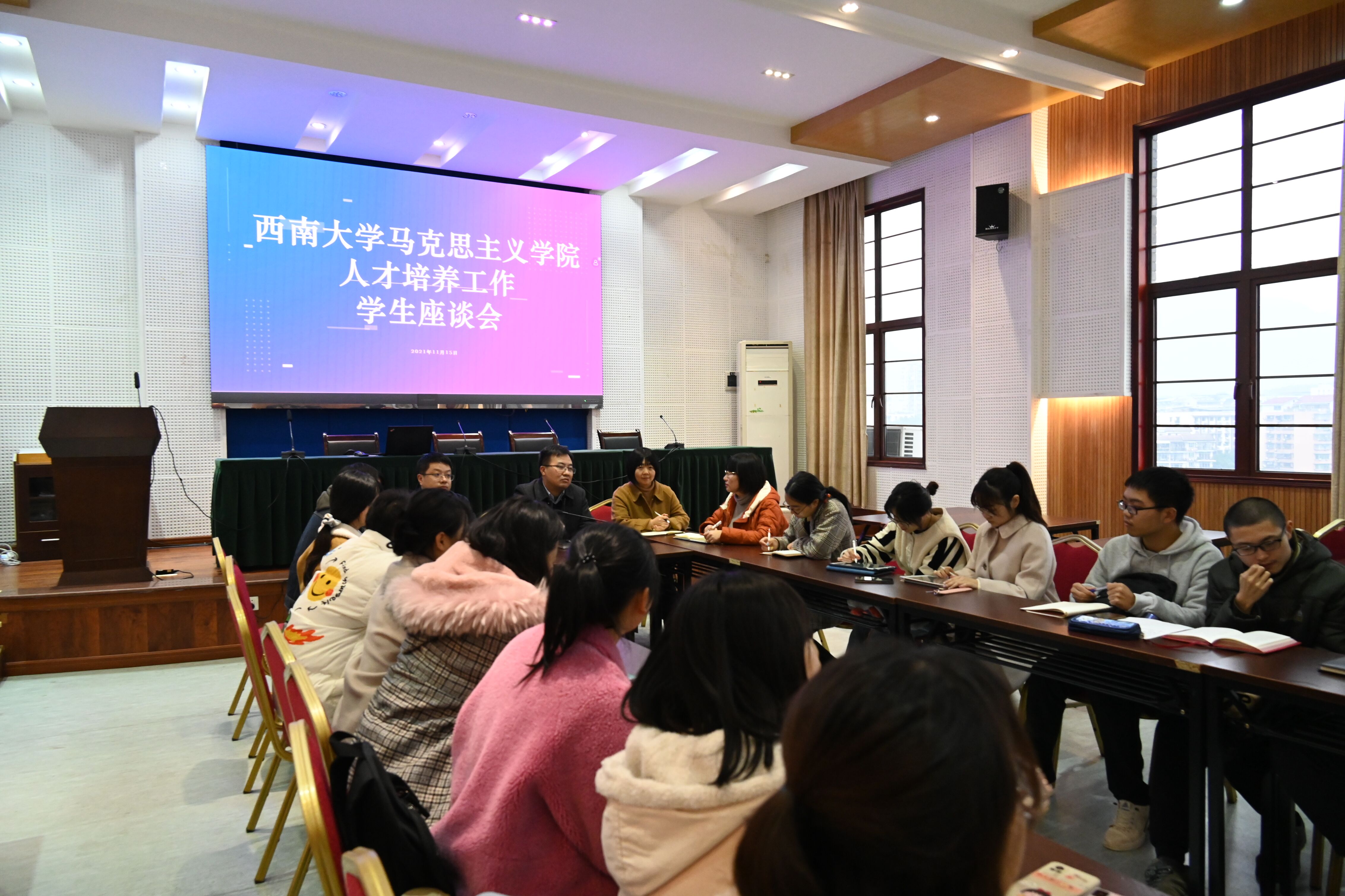 座谈会期间,同学们结合自身实际情况,踊跃发言、积极献策,涉及课程体系设置、教学教法改进、期中期末检测、“两早一练”等多方面内容,真实反映出同学们的不同诉求,也体现出马院学子较强的责任感和主人翁意识。学院老师认真倾听同学们的意见,耐心询问,或答疑解释,或仔细记录,现场氛围融洽活跃,座谈会有序推进。
