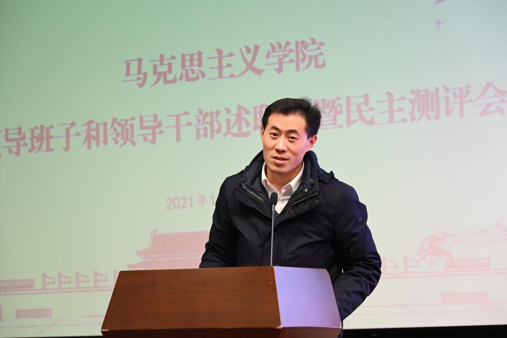 首先,学院院长白显良代表学院领导班子从2021年主要工作业绩、存在主要问题以及下一步工作举措三个方面进行了领导班子述职,之后进行了班子个人述职。他指出,2021年度学院在建党百年之际,扎实开展党史学习教育,紧扣“推进全国党建工作标杆院系建设工作和加强全国重点bv伟德国际1946建设”两大主题,统筹推进党建工作与学院事业发展深度融合,取得了显著成绩。但同时也指出了学院在学科实力、队伍建设、人才培养等方面存在的不足。来年,学院将以党建为引领,统筹全国党建工作标杆院系和全国重点bv伟德国际1946建设,推进学院各项事业再上新台阶。