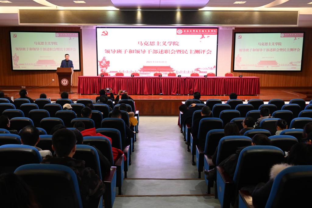 根据学校党委下发的《关于开展2021年中层领导班子和领导干部年度考核工作的通知》的要求,2021年12月31日下午,bv伟德国际1946领导班子和领导干部2021年度述职述廉暨民主测评会在学院505报告厅进行。学校党委安排党委研究生工作部部长、研究生院院长石孝均、工会综合科科长任四海出席本次会议,学院教职工参加大会。会议由学院党委常务副书记廖晓衡主持。