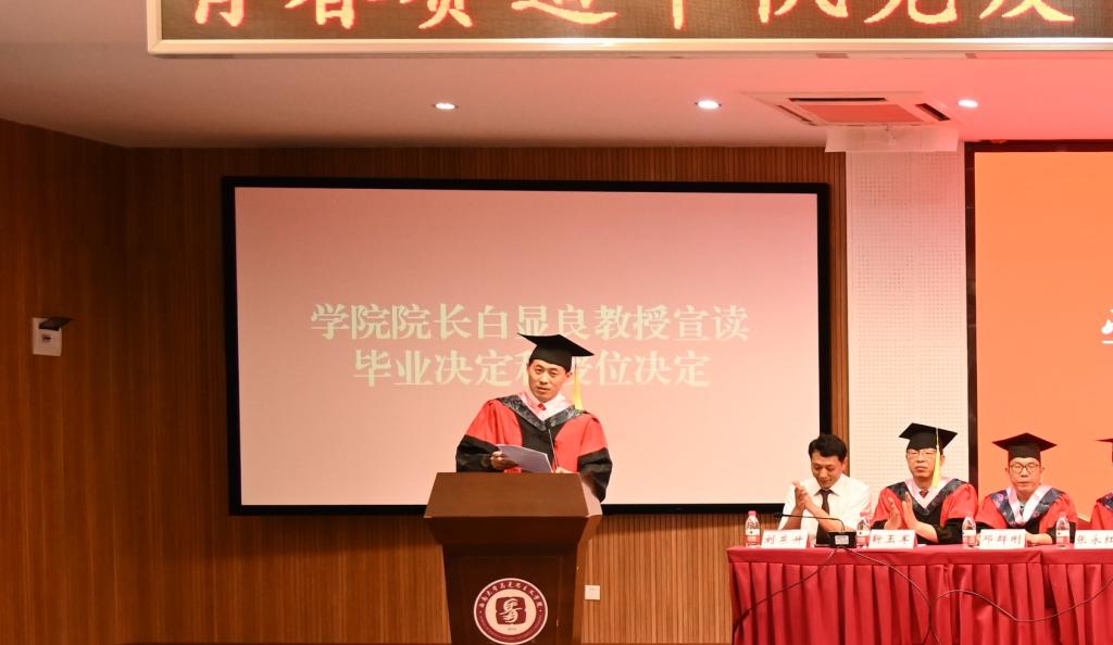 毕业典礼在国歌声中拉开序幕。院长白显良教授宣读毕业决定和学位授予决定,学院领导老师向2022届毕业生代表颁发毕业证。
