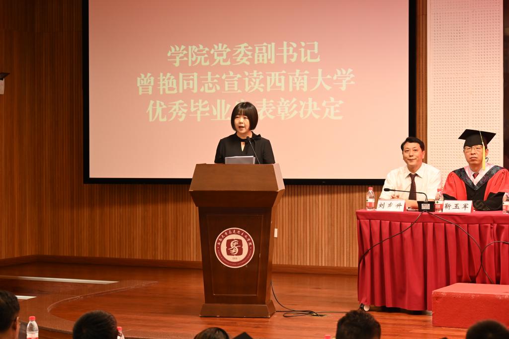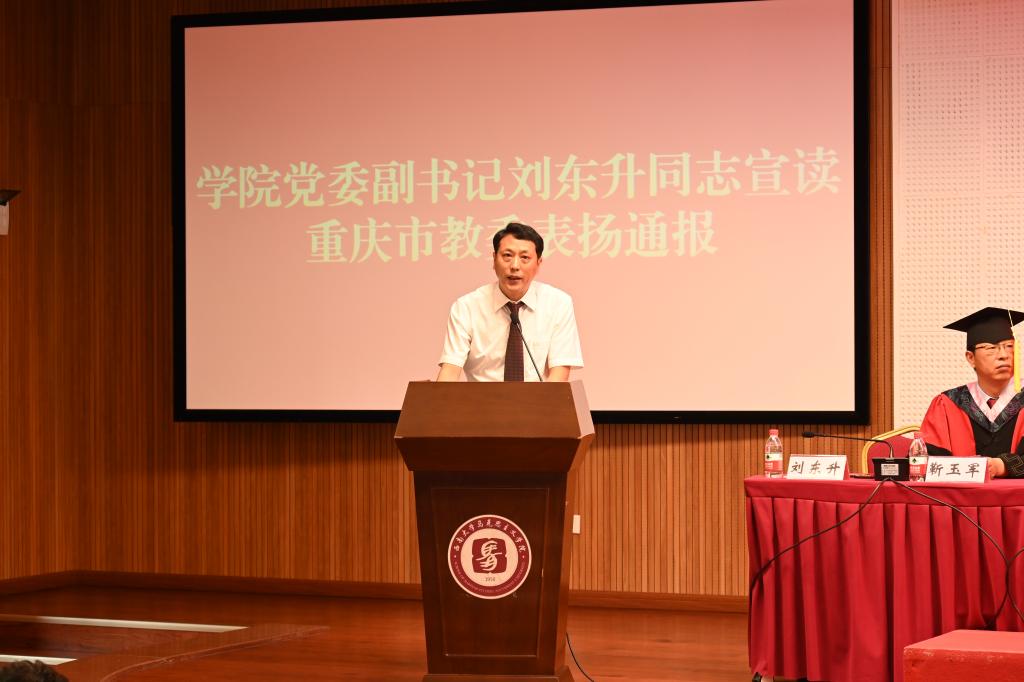 学院党委副书记刘东升宣读《重庆市优秀毕业毕业生表扬通报》,党委副书记曾艳宣读《伟德victor1946优秀毕业生表彰决定》。