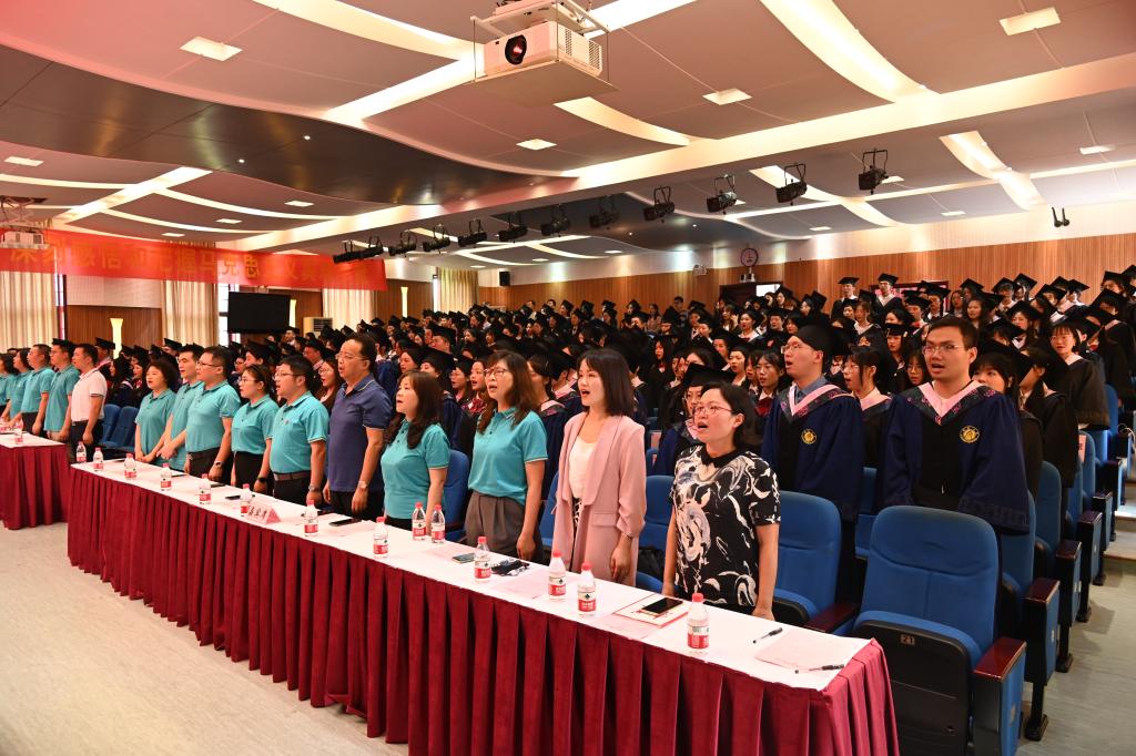 最后2022届毕业典礼暨学位授予仪式在齐唱校歌声中圆满落幕。现场教师起立鼓掌欢送毕业生。