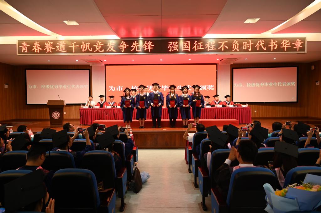 学院领导老师分别向市、校优秀毕业生代表颁奖。