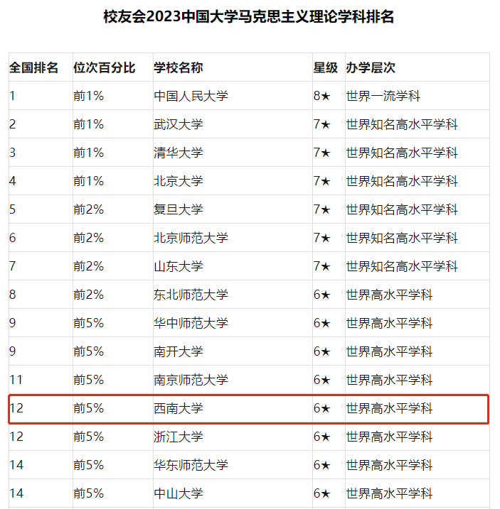 马克思主义理论学科跻身校友会2023中国大学一流学科排名全国前5%