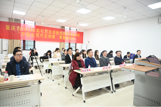 为深入贯彻落实习近平总书记在学校思想政治理论课教师座谈会上的重要讲话精神,推进习近平新时代中国特色社会主义思想进教材、进课堂、进头脑。2023年10月28日,重庆市2023年高校思想政治理论课教师教学技能竞赛“中国近现代史纲要”课复赛在bv伟德国际1946成功举办。本次比赛由重庆市教委和重庆市高校思想政治理论课“中国近现代史纲要”课分教学指导委员会主办,伟德victor1946承办,来自重庆市各高校的20位参赛教师围绕“中国近现代史纲要”课程教学内容,依次进行20分钟的教学展示。重庆理工大学的徐茂华教授、四川大学的付志刚教授、重庆邮电大学的郭海成教授、重庆师范大学的孔庆茵教授、重庆工商大学的洪富忠教授担任评委。
