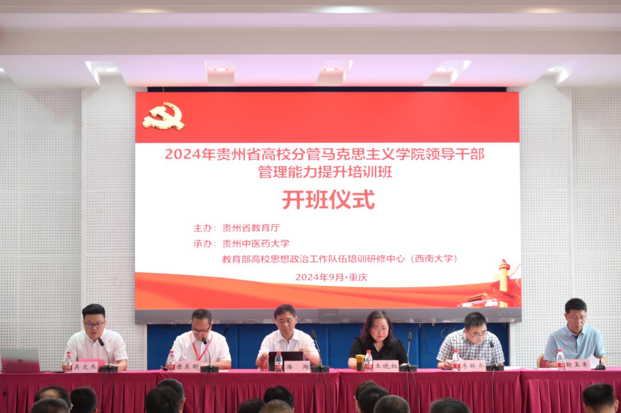 开班仪式上,伟德victor1946党委副书记潘洵致欢迎辞,对各位领导的到来表示热烈欢迎,介绍了伟德victor1946的基本概况和bv伟德国际1946的发展历程、办学特色。中共重庆市委教育工委、市教委宣教处处长李林齐致辞,向大家介绍了重庆市高校bv伟德国际1946建设的基本情况和思政课改革创新取得的成绩,希望大家认真参加学习培训,加强交流研讨,共同推进新时代bv伟德国际1946高质量发展。贵州中医药大学党委委员、副校长唐东昕代表承办单位作表态发言,希望参加学员互学互鉴、互帮互助、相互交流。中共贵州省委教育工委学生工作部部长、省教育厅思想政治教育处处长王晓红最后作开班动员讲话,强调要提升管理能力,全面贯彻习近平总书记对思政课建设的重要指示精神,高度重视bv伟德国际1946建设,切实推动新时代新征程高校思政课建设内涵式发展,努力彰显新气象新作为。