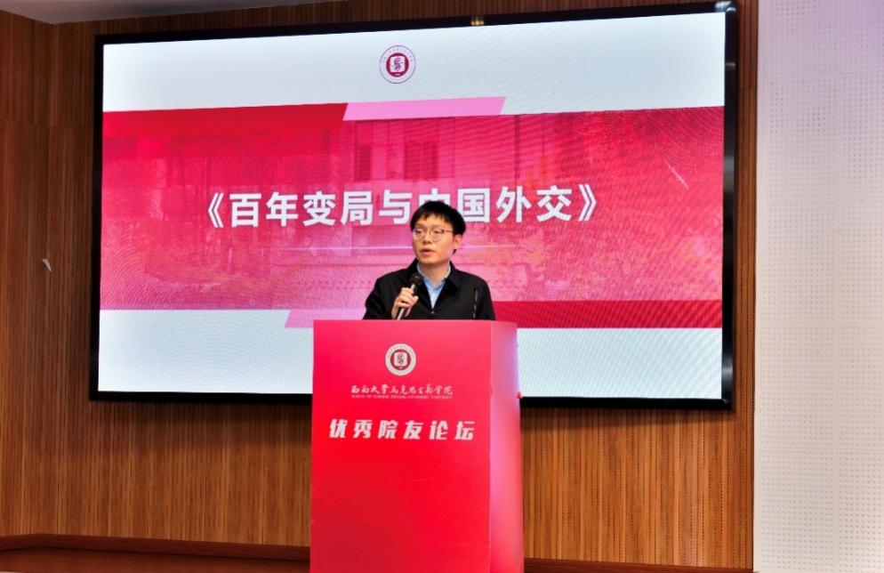 2024年10月18日下午15时,bv伟德国际1946优秀院友论坛在学院505报告厅举办。本次论坛邀请学院优秀院友代表2004级本科生、外交部政策规划司覃伯军回学院交流。论坛由学院党委副书记罗亮、学生何昌锐主持,学院师生代表参加此次论坛。