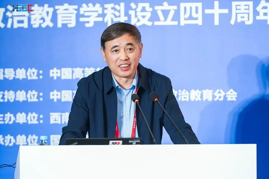 重庆师范大学原党委书记邓卓明以《改革开放以来党的创新理论引领思想政治教育学科发展的三重维度》为题,围绕“党的创新理论为思想教育学科发展定位”“党的创新理论推动思想政治教育学科持续发展”“党的创新理论引领思想政治教育学科高质量发展”三重维度,强调党的创新理论对思想政治教育学科发展的重要意义。