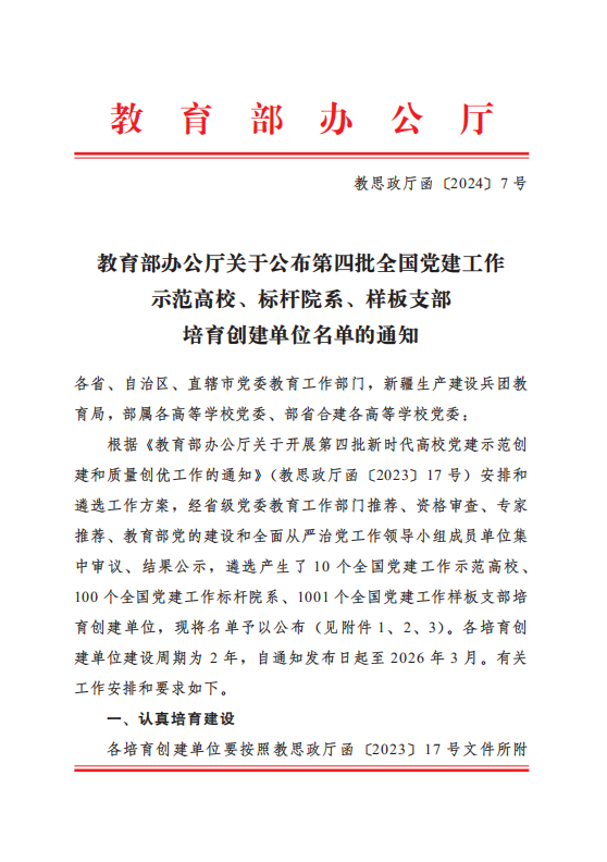 二是抓基层激动能。实施“重规范、抓督导、强素质、优服务、促活力”五项举措,建设“政治功能强、支部班子强、党员队伍强、作用发挥强”的党支部。推进党支部标准化规范化建设,认真落实“三会一课”、主题党日、谈心谈话、组织生活会等制度。召开“五高”建设专题调研会,修订党支部工作考核办法,开展“赛马比拼”,推动“支部书记上讲台”,激发基层党建工作内生动力。本科生第四党支部成为全国第四批样板支部培育创建单位,教师党支部书记在学校党支部书记素质能力大赛中获奖。
