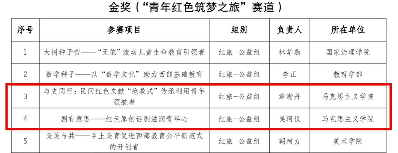 推进“大学生创新实践能力提升‘筑梦’行动”,致力于培养新文科拔尖创新人才。以大学生创新创业训练计划项目、挑战杯学术科技竞赛、中国国际大学生创新大赛“一项目两赛事”为重要抓手,依托“梦想创客”辅导员工作室,采取 “全覆盖发动、有重点培育、全流程辅导、多平台展示”四步工作法, 极大调动学生创新实践参与积极性。荣获中国国际大学生创新大赛全国银奖1项、重庆市金奖2项,“挑战杯”全国大学生创业计划竞赛全国铜奖1项,重庆市金奖1项、银奖1项。“挑战杯”全国大学生课外学术科技品牌竞赛“揭榜挂帅”专项赛全国特等奖1项、一等奖2项、二等奖1项、三等奖1项。国家级大创项目9项,校级大创立项56项。学院团委也在年度考核中获评第一。