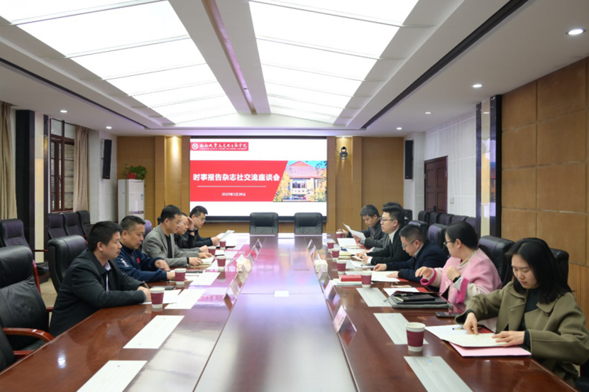 3月28日下午,时事报告杂志社张习文主编一行到来院就“形势与政策”课建设等开展座谈交流。bv伟德国际1946党委书记吴文杰、副院长唐斌以及相关科室负责人和“形势与政策”课教师参加座谈会。