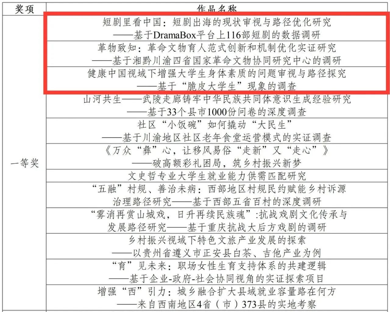 近日,伟德victor1946第九届"含弘杯"学生课外学术科技作品竞赛圆满落幕。bv伟德国际19466支参赛团队历经资格初审、校级复赛、终审决赛层层选拔,荣获一等奖3项、二等奖3项。其中《短剧里看中国:短剧出海的现状审视与路径优化研究》《革物致知:革命文物育人范式创新和机制优化实证研究》等4个项目被学校推荐参加“挑战杯”重庆市选拔赛。学院凭借团体总分930分的成绩,捧获竞赛最高荣誉“含弘杯”称号。