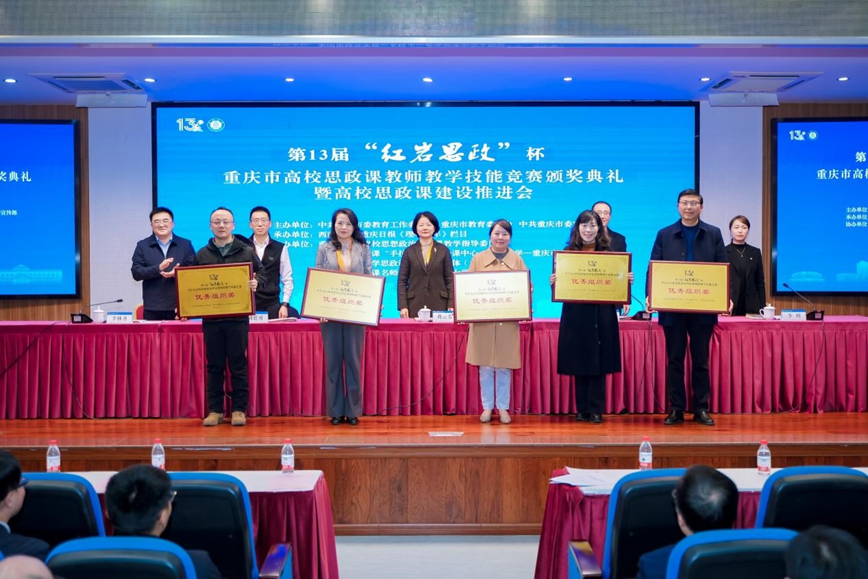 重庆市委宣传部宣教处副处长李朗宣读获奖名单,参会领导为获得优秀组织奖的高校和获奖教师颁发荣誉证书。