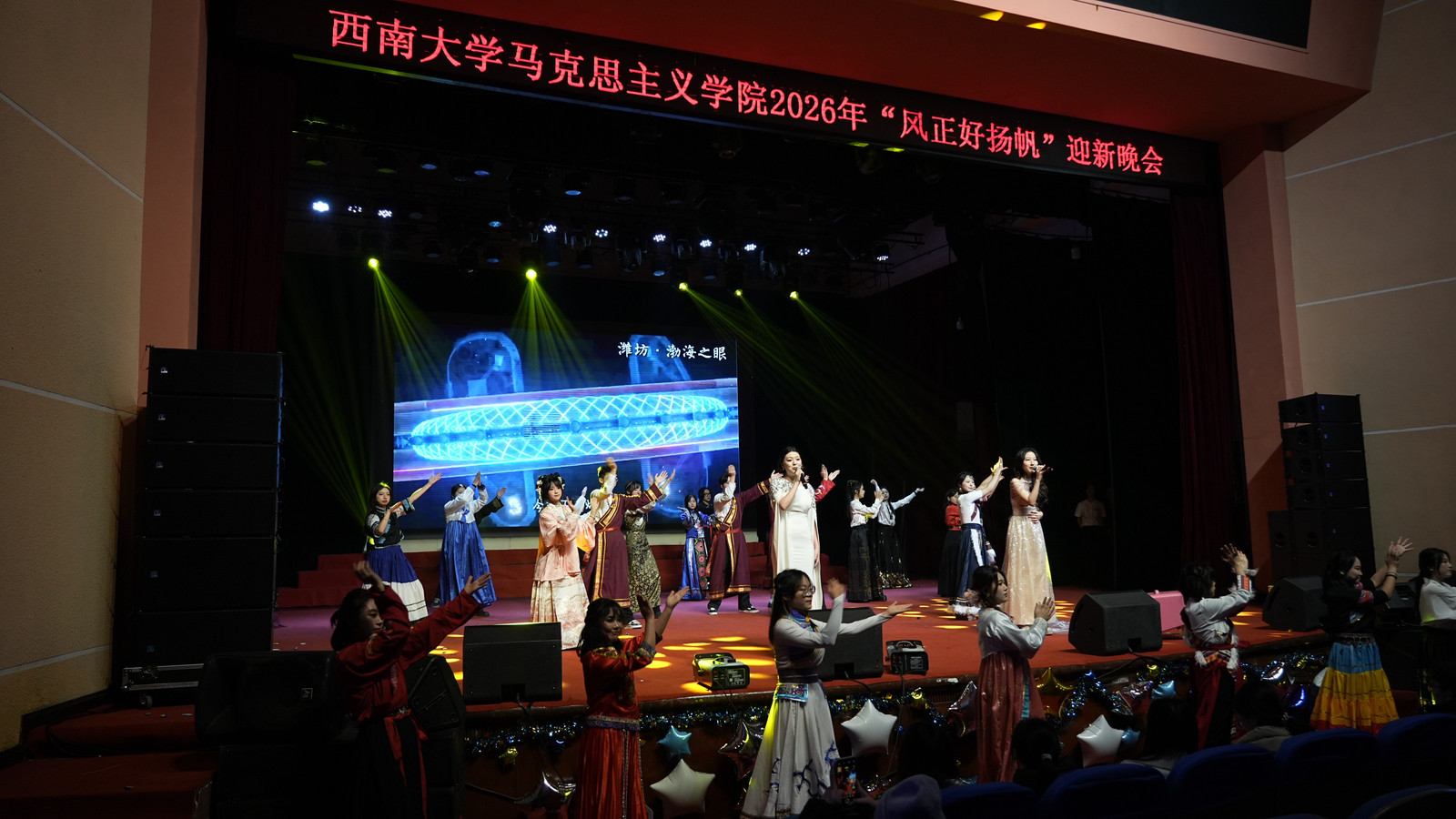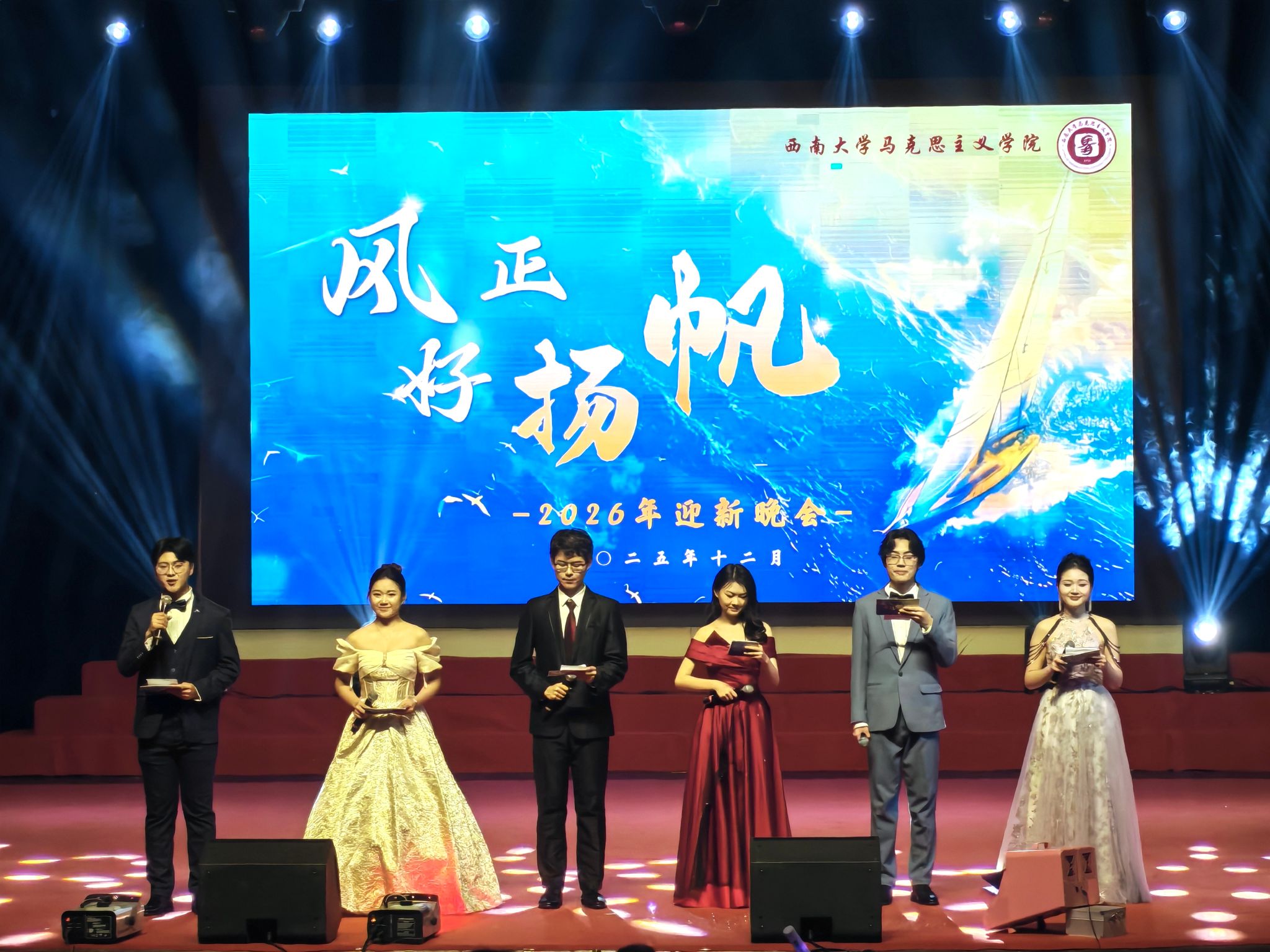 12月14日晚,bv伟德国际19462026年“风正好扬帆”迎新晚会在光大礼堂温情上演。在辞旧迎新的美好氛围中,学院领导、各系部教师及学生齐聚一堂,以歌舞寄情、以诗言志,激励马院人在时代东风的指引下开好局、起好步,共同擘画前行航程。