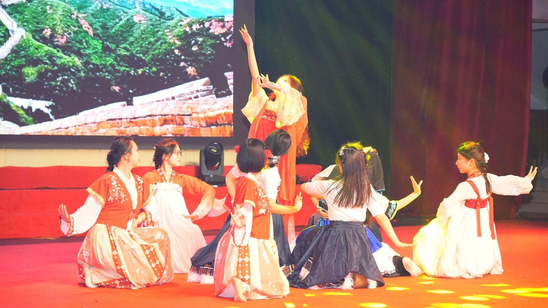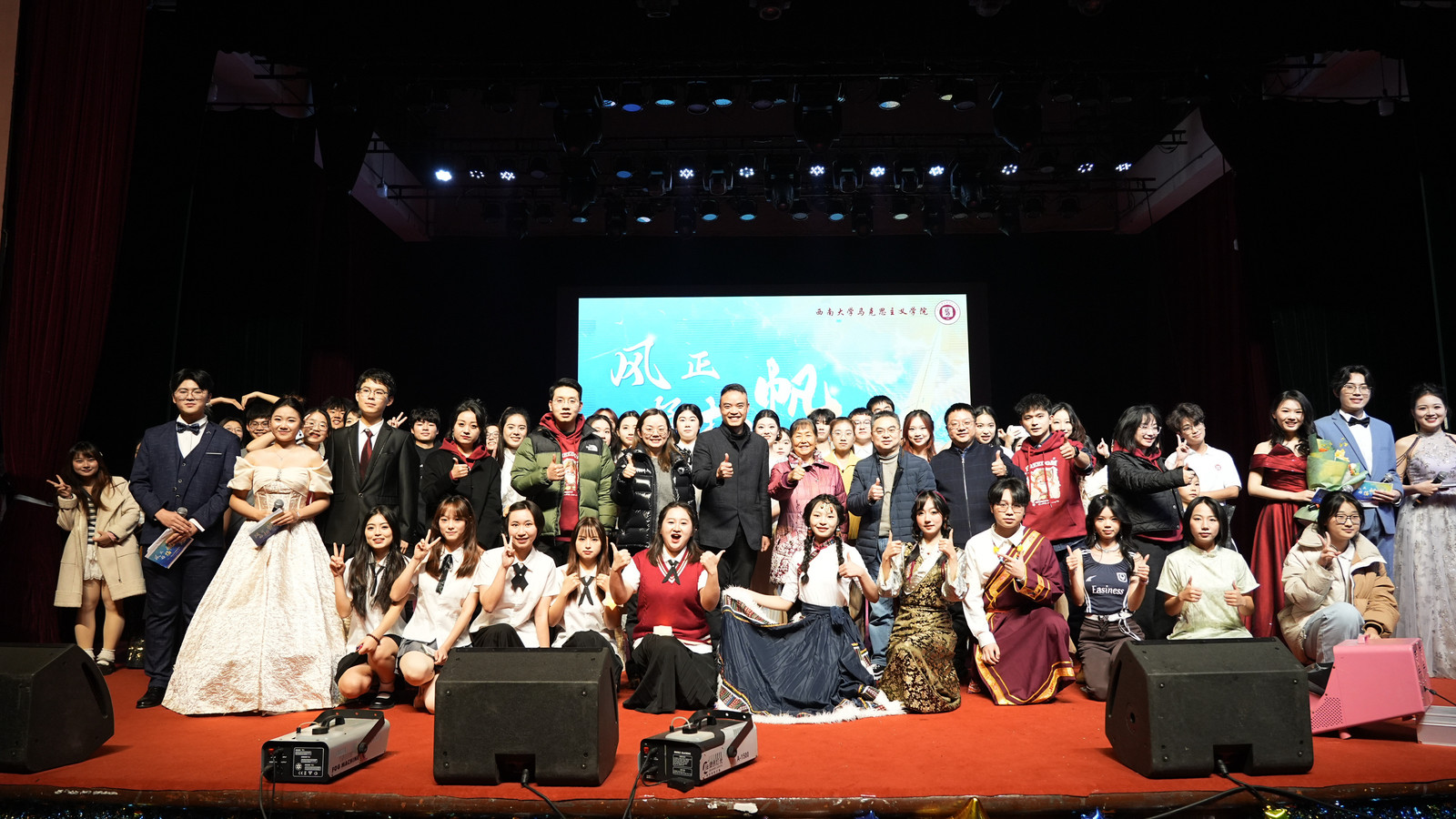 晚会分为“风正启航时”“奋楫共笃行”和“扬帆向未来”三个篇章。开场舞《dare to live》带动全场氛围,瞬间点燃了现场师生们的热情与期待,向广大师生展示了马院学子的青春活力;紧接着民族舞串烧《山河共舞,锦绣欢歌》以舞蹈语言凝聚民族情感,为现场观众带来了一场沉浸式的文化盛宴;学院辅导员倾情献唱歌曲《倔强》,既是对学子逐梦之路的深情鼓舞,也是师生同心奋进的生动写照。