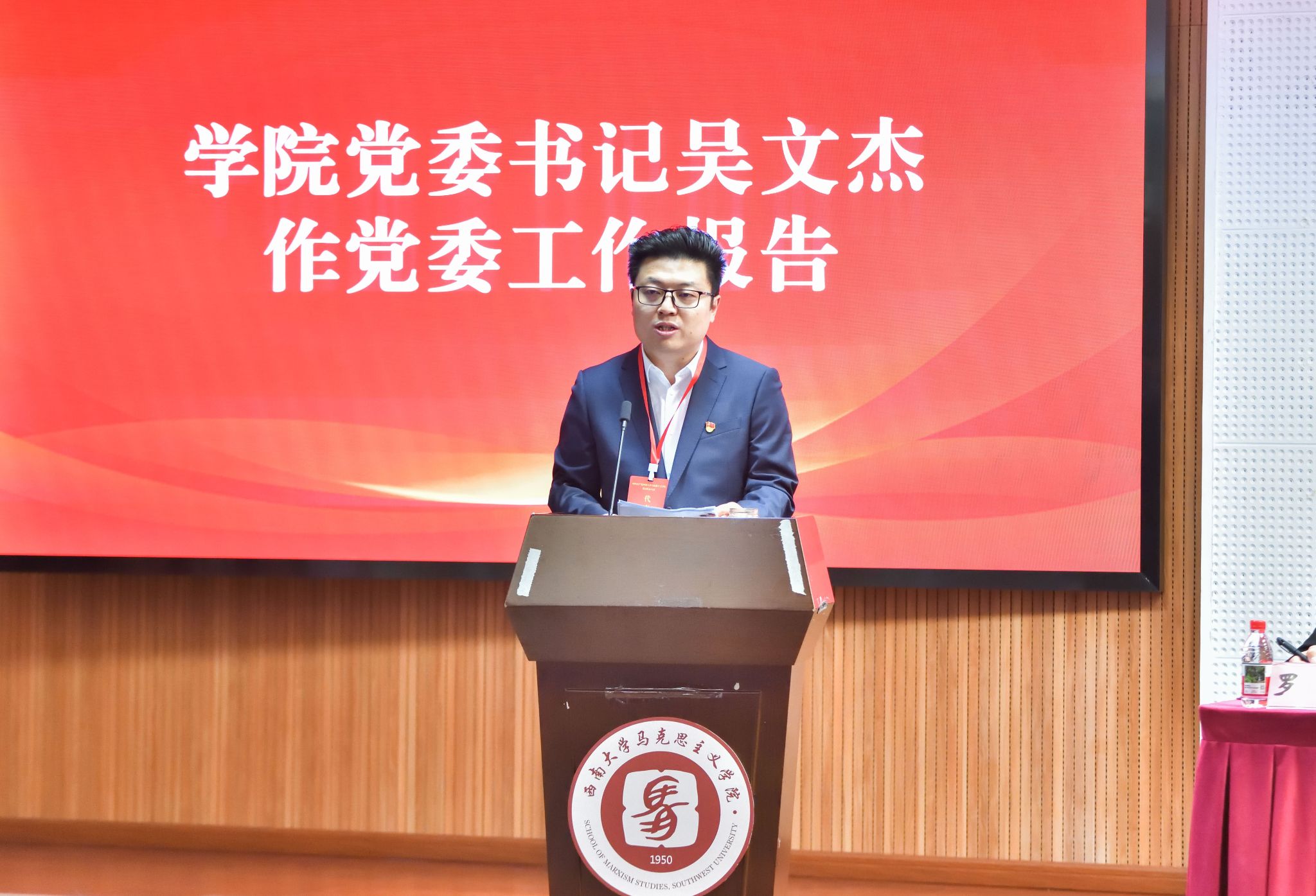学院党委书记吴文杰同志讲话,要求新一届党委、纪委领导班子肩负大会赋予的崇高使命,回应全体党员的殷切期望,讲政治顾大局、讲团结乐奉献、讲担当敢作为,以实干回报重托,以实绩作答信任,不断开创马院党建和事业发展新局面,为教育强国建设贡献马院力量!