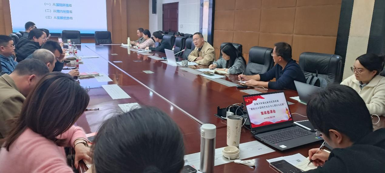3月13日,学院研究生思政课教研部、“习近平新时代中国特色社会主义思想概论”课程教研室等开展协同集体备课会。王永友教授围绕习近平总书记在全国两会期间的重要讲话和全国两会精神,以《在历史纵深中把握成就、明辨形势、锚定重点、应对变化》为题作专题讲座,并对如何将“十五五”规划纲要融入思政课教学进行分享。与会老师围绕“金融强国”“能源强国”“新质生产力”“中国式现代化”等重要议题进行研讨,重点围绕课程融入、专题教学、本研一体等内容探讨思政课教学改革的创新举措。