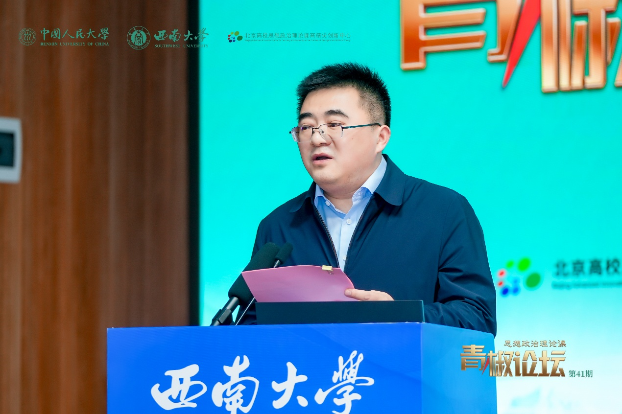 重庆市委教育工委、重庆市教委宣教处处长李林齐在讲话中指出,本次论坛为青年思政课教师搭建交流平台,对推动思政课内涵式发展具有重要意义。他强调,要夯实课堂主渠道,打造高素质思政课教师队伍,为教育强国建设与落实立德树人根本任务贡献力量。