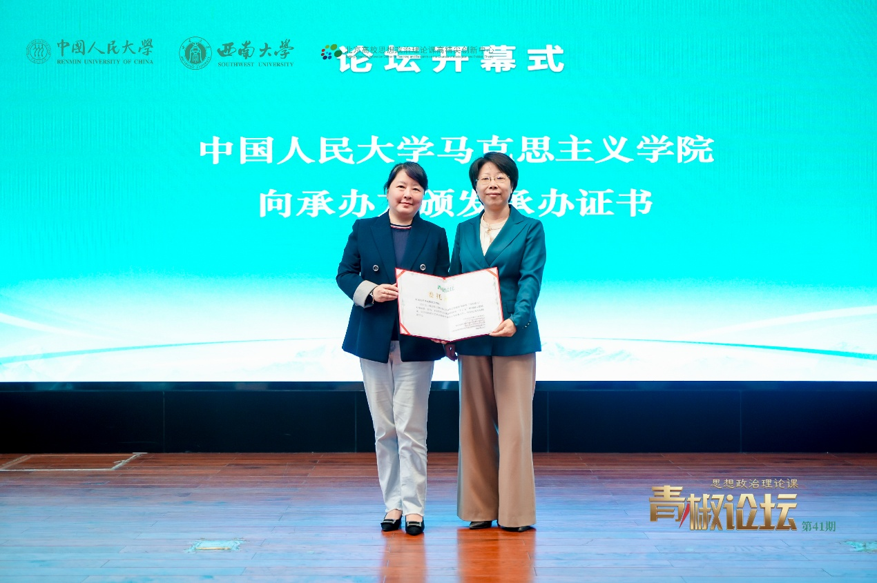 4月3日,由北京高校思想政治理论课高精尖创新中心和中国人民大学bv伟德国际1946主办,bv伟德国际1946承办的思想政治理论课“青椒论坛”第41期举办,本次论坛的主题是“党的二十届四中全会精神暨国家‘十五五’规划融入思政课”。重庆市70余所高校的师生代表参加本次论坛。