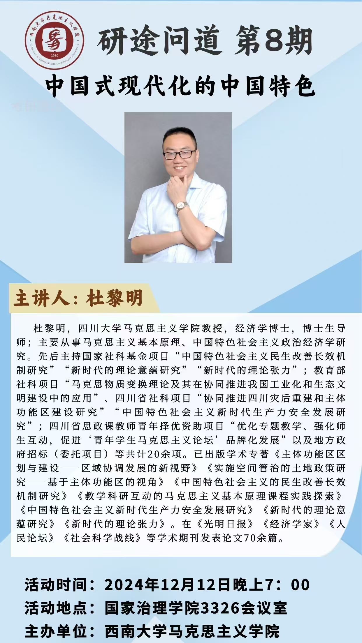主 讲 人:杜黎明 四川大学bv伟德国际1946教授、经济学博士、博士生导师