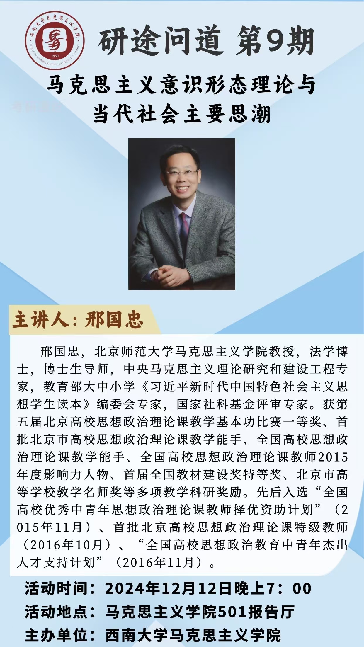 讲座通知:马克思主义意识形态理论与当代社会主要思潮