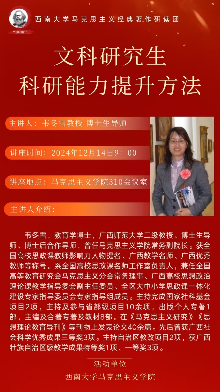 讲座题目:文科研究生科研能力提升方法
