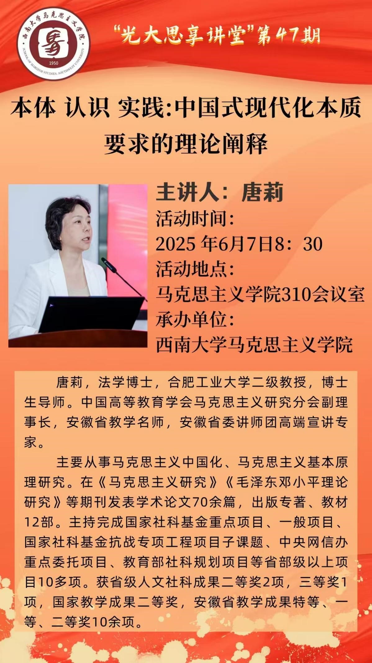 讲座通知:本体认识实践:中国式现代化本质要求的理论阐释