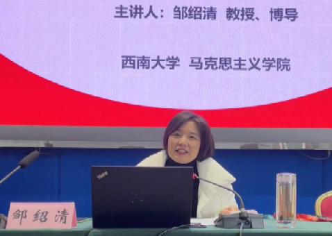 邹绍清教授以“新时代实习思政教师的使命担当”为主题,对同学们开展了丰富的教学理论培训。其一,实习思政教师要明确自身使命担当。要以立德树人这一根本使命为指引,在实践中不断塑造高素质、练就高本领,成长为合格而有作为的人才。其二,实习思政老师要转换好“角色”,这一角色具体界定为教师的角色、学生的角色和朋友的角色,其中教师的角色又细化为学科教师和班主任两个方面,都需要同学们在实习的过程中不断思考探索。其三,实习思政教师要练好“四课功”,即备课、讲课、说课、听课。邹绍清教授以备课中的教学设计五步法为案例,为大家如何进行备课提供了鲜活指导。