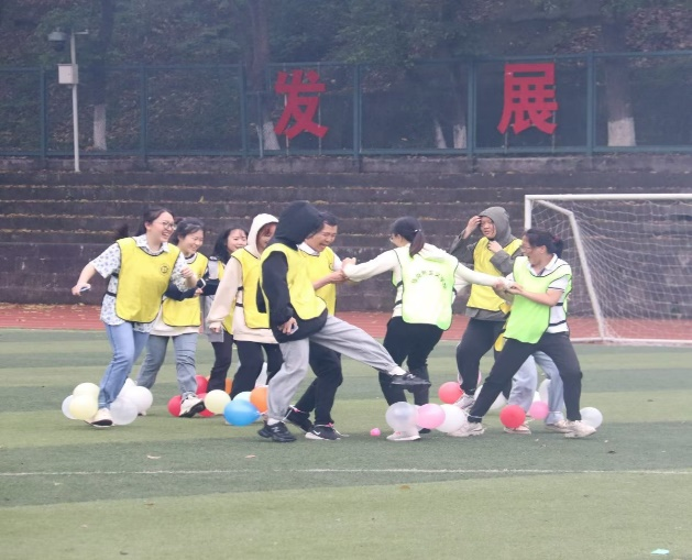绿茵之中不仅有集体游戏的热闹非凡,还有个人游戏的斗智斗勇,在游戏勇往直前中,选手们弯腰转圈,直线前进,这是一场对平衡性和稳定性的考验;在动如脱兔里,灵活应变地背着背篓接球,敏捷的身手活跃在场地上;环环相扣也紧张地进行着,老师和同学们手起圈落间,一道道题目被套中答出,一件件奖品也都被大家收入囊中;在决胜千里中精准有力的射球,一次比一次有进步,一点比一点接近成功。