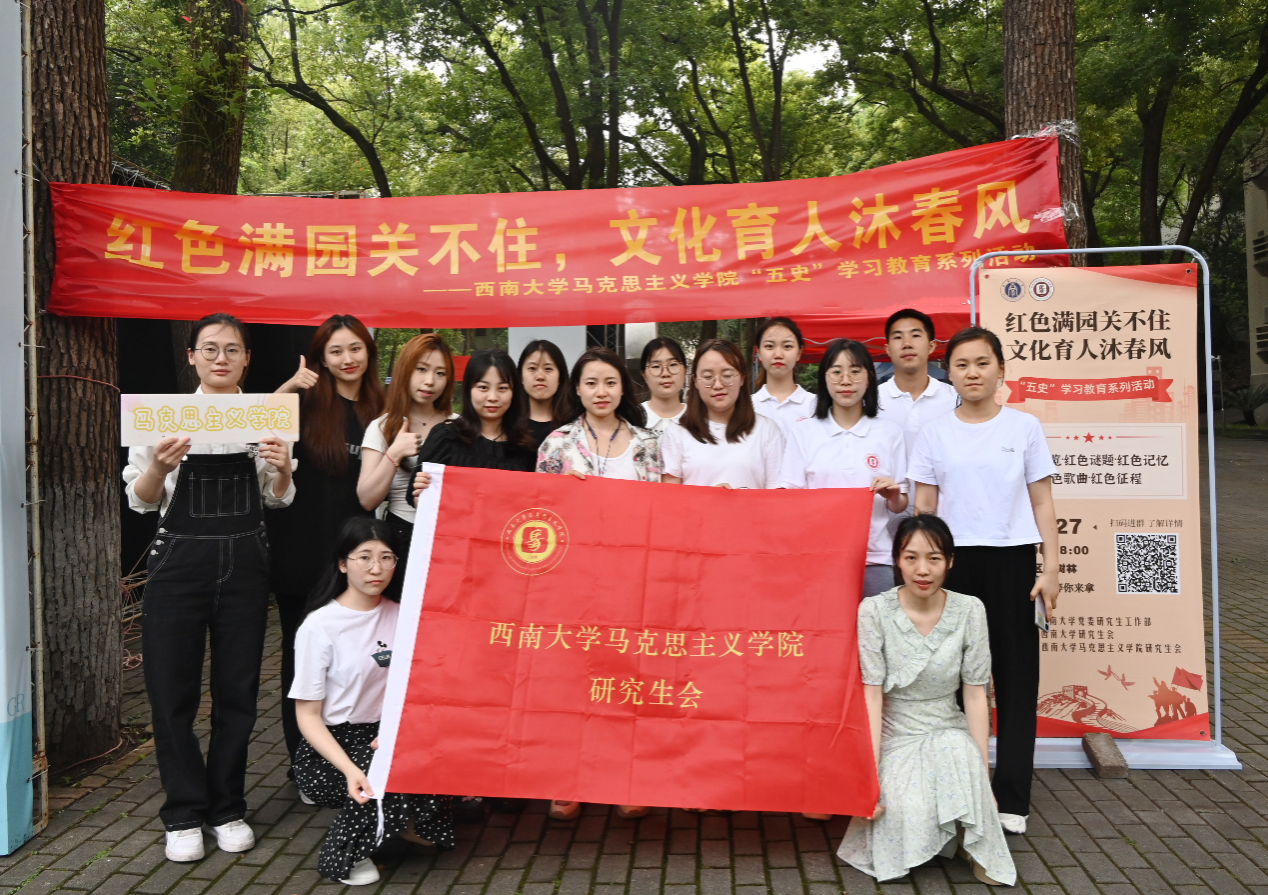 为深入推进学习贯彻习近平新时代中国特色社会主义思想主题教育,加强“五史”学习教育,充分发挥红色文化建设在培育和践行社会主义核心价值观中的重要作用,引领新时代青年学史明理、学史增信、学史崇德、学史力行,5月27日下午,bv伟德国际1946研究生会在北区樟树林开展“红色满园关不住,文化育人沐春风”“五史”学习教育系列活动。
