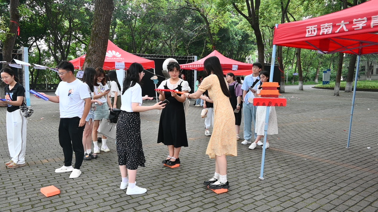 参与者在活动中学习知识、愉悦精神的同时,还获得了相应的物质奖励。凭借在每个活动展台获得的通关印章,参与者前往领奖处领取相应数量的套圈,套取精美奖品并合影留念。