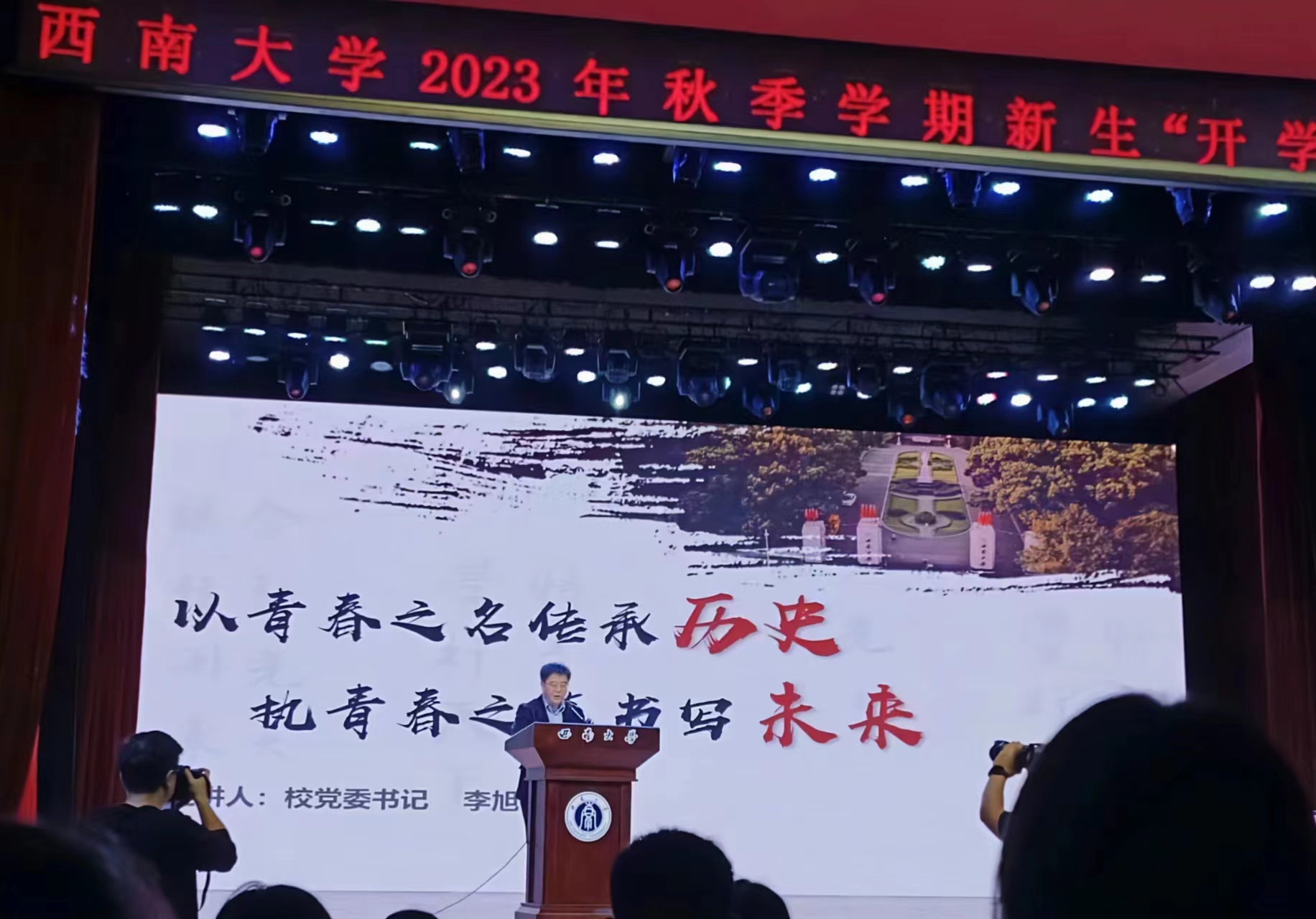 9月26日下午,2023级全体新生分别在大礼堂、学院505报告厅共上秋季学期新生“开学第一课”。课上,斩获成都大运会跆拳道男子80公斤级冠军的体育学院2020级本科生张凯,向学弟学妹们分享了自身奋斗经历。学校党委书记李旭锋教授深情寄语2023级新同学“以青春之名传承历史,执青春之笔书写未来”,希望同学们保持独立思考、瞄准学科前沿、注重实践积累、深深扎根脚下这片土地,自觉传承文化之魂脉,继续发扬精神之力量!