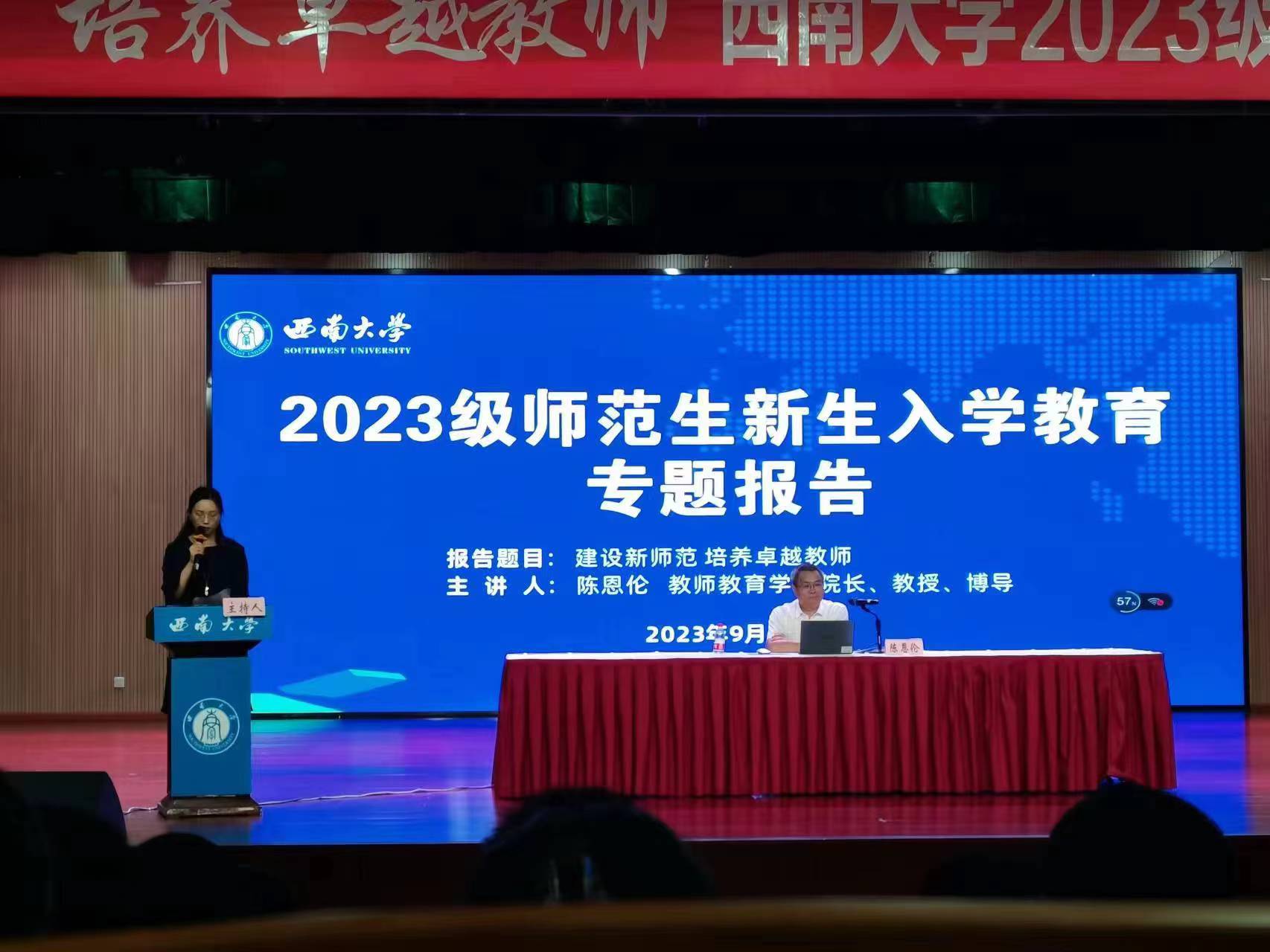 9月28日上午,2023级师范生参加了伟德victor19462023级师范新生入学教育专题报告大会。报告主题为“建设新师范,培养卓越教师”,由教师教育学院院长陈恩伦主讲。陈恩伦教授围绕我国师范教育的历史发展、师范教育改革的必要性、新师范新在哪里、伟德victor1946新师范改革探索四个方面进行了系统阐述。通过本次报告,师范新生们深刻认识到时代赋予师范生的使命和责任,对自身发展方向和发展目标更加坚定明确。