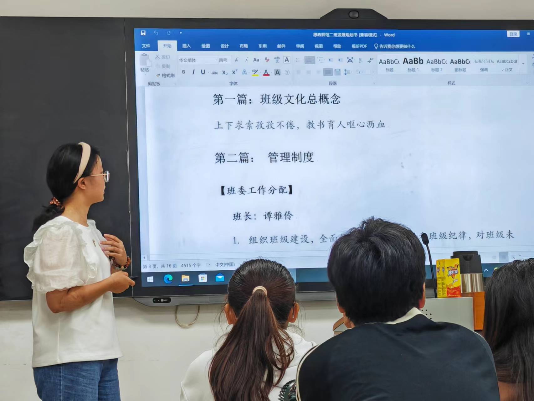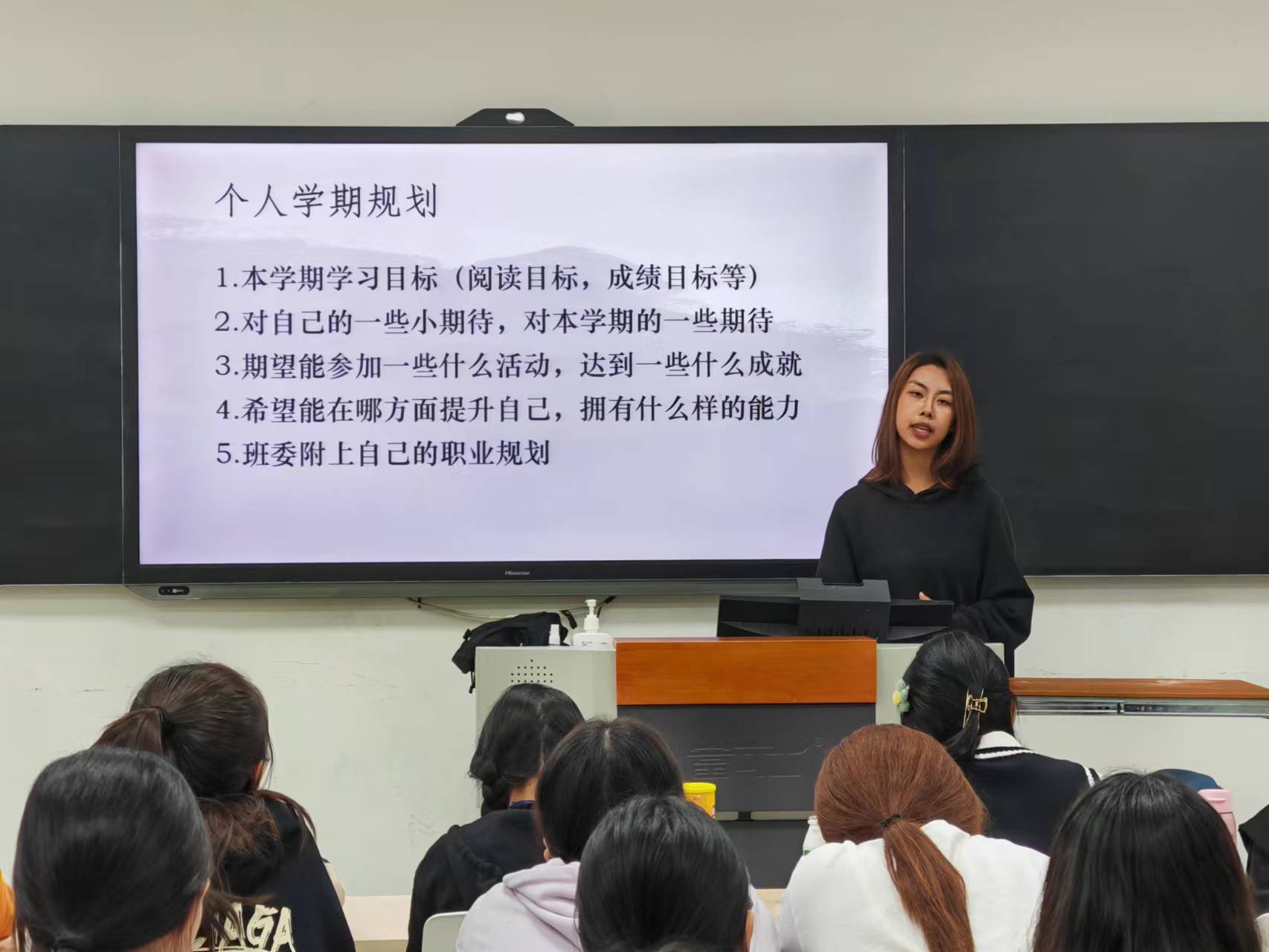 10月11号晚,2023级马克思主义理论班主题班会在学院501召开。首先,每位同学依次进行了自我介绍和简单分享。随后是班委对本学期工作规划进行详细阐述,并与同学们一起制定班级奋斗目标。最后是班主任万雪飞老师、辅导员吴克瘟老师小结讲话。万老师通过对自身大学生活的回忆,引领同学们展望未来。吴老师则结合学院保研细则介绍了大学阶段提升能力的渠道和平台,指导同学们做好大学阶段的生涯规划。