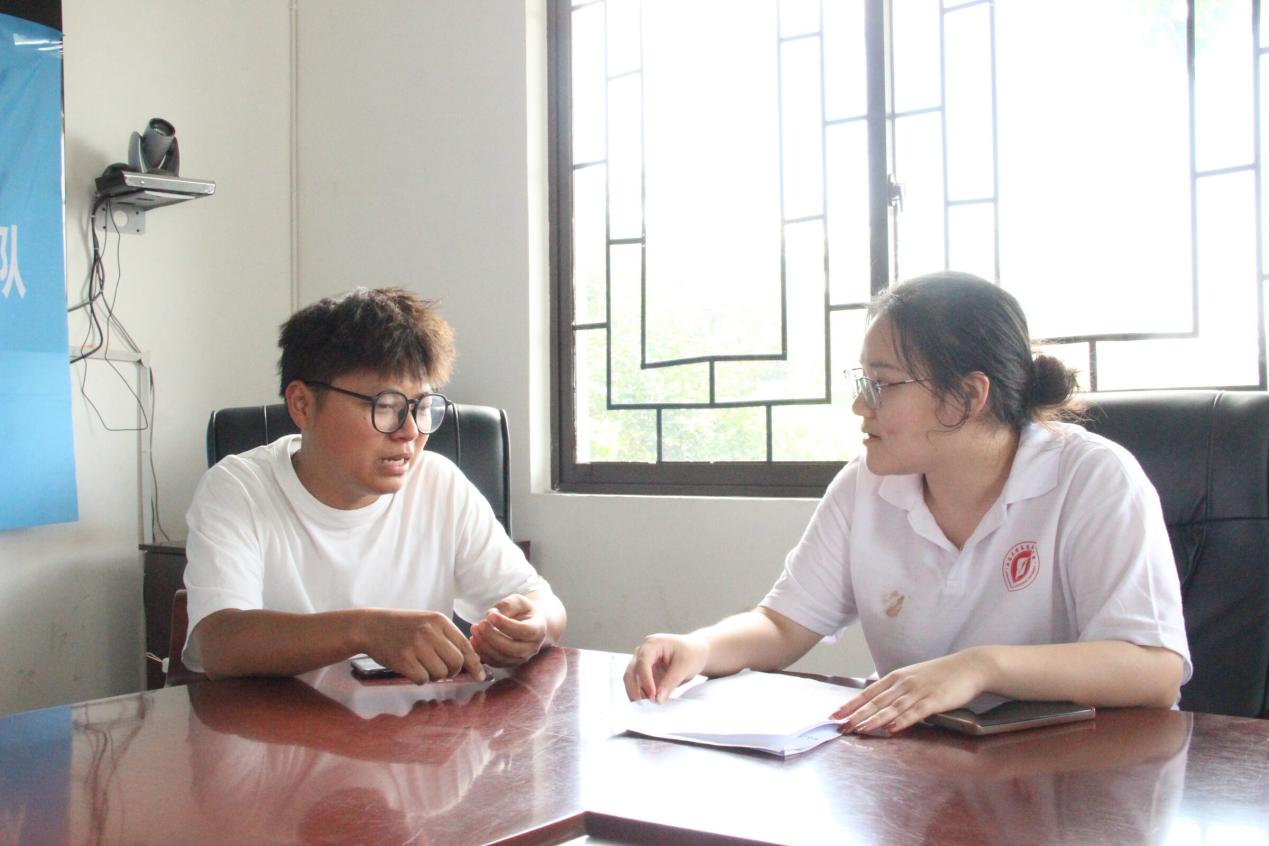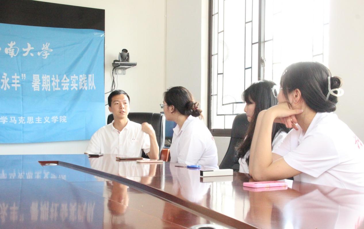 当天下午,实践队在永丰村村委会与种植大户王涛进行深入交流。访谈聚焦返乡动因、种植困难、解决方法、政策支持、种植成果等方面。王涛表示,回到家乡从事农业工作,没有太多外因吸引,最根本原因是对家乡的热爱。在交流中,队员们深刻认识到,要做好新时代三农工作,就需要有源源不断的青年关注农村农业工作,并投身乡村振兴的时代伟业。