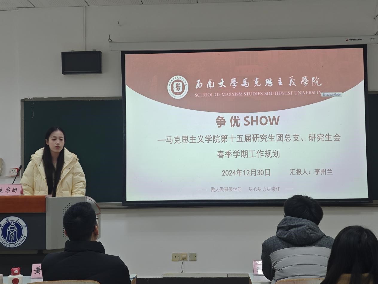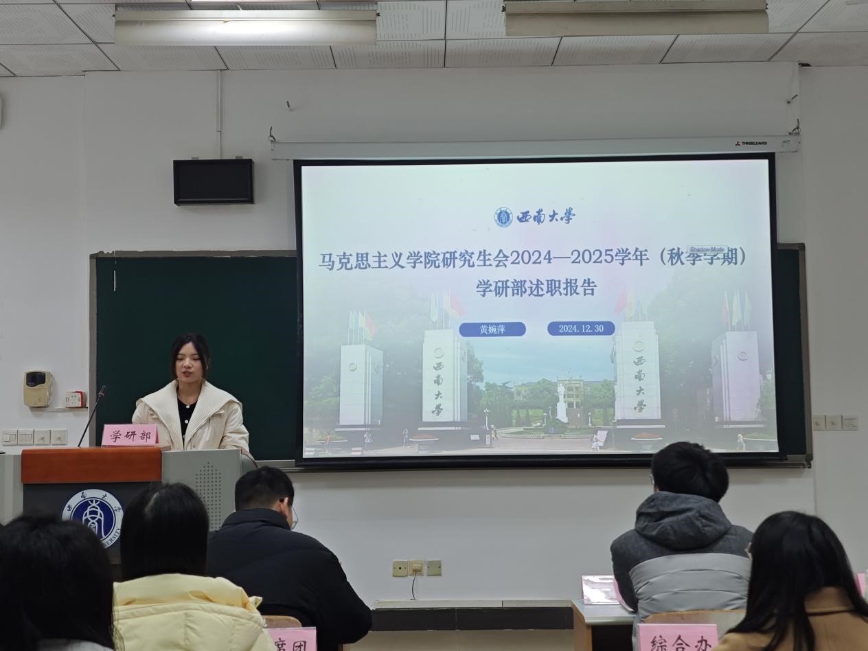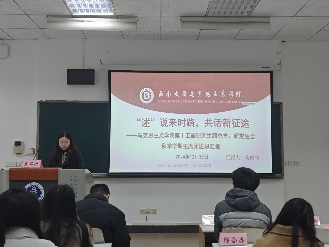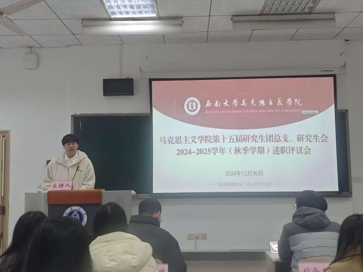 为贯彻落实《关于推动高校学生会(研究生会)深化改革的若干意见》等相关文件精神,总结研究生会一学期以来的工作经验,反思问题不足,2024年12月30日上午,bv伟德国际1946第十五届研究生团总支、研究生会2024-2025学年(秋季学期)述职评议会在第十教学楼403教室顺利举行。bv伟德国际1946研究生团总支、研究生会指导老师黄林、伟德victor1946西南民族教育与心理研究中心代表、学院部分研究生代表、第十五届研究生团总支、研究生会全体成员参会。本次会议由研究生会综合办工作人员刘杰主持。