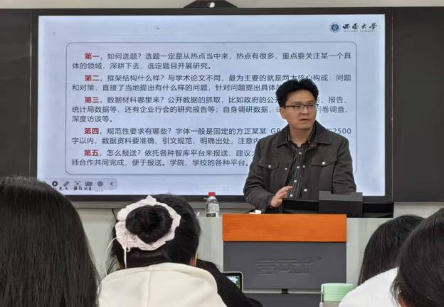 为响应国家“加强新型智库建设”战略的号召,回应当代青年参与社会治理的现实需求,拓宽学社成员的成长路径,2025年4月3日中午,红岩学社在学院研究生教室举办资政报告撰写能力培训会。本次大会邀请到bv伟德国际1946副教授崔建西老师作为指导老师,为同学们讲授资政报告的选题及写作技巧。