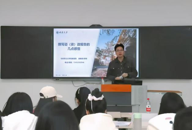 最后,崔老师满怀期望地鼓励同学们,在未来的学习生活中,要时刻关注现实热点,勇于尝试独立撰写咨政报告,期待大家在未来能够大展宏图,为祖国和社会的发展贡献自己的智慧和力量。