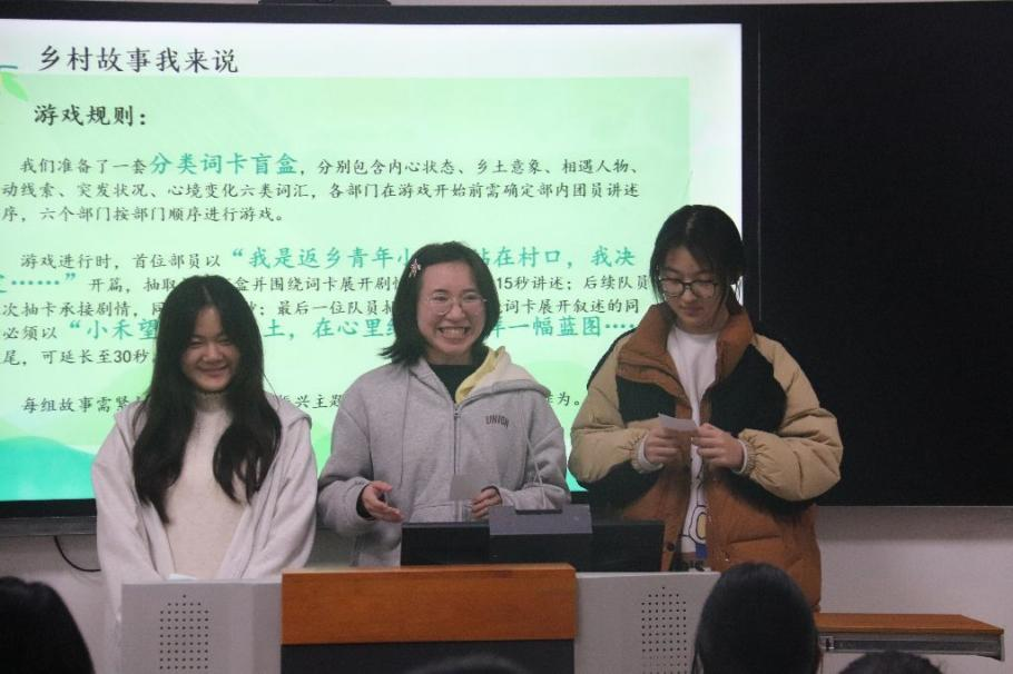 理论学习之外,各部门团员通过“乡村故事我来说”接力叙事游戏,在协作中深化了对青年担当与乡村发展的认识。